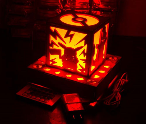 Pokemon Inspired ( Pikachu charmander bulbasaur Squirtle pokeball ) Color LED Lantern with Outlet powered Base