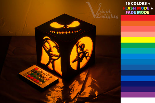 Nightmare Before Christmas inspired Color LED Lantern - Jack & Sally Box with Outlet powered Base
